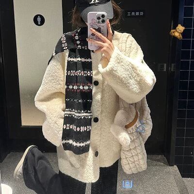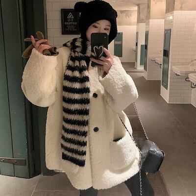 フェイクファー 韓国 ラムファーコートレディース 2025新作大ヒット秋冬ルーズフィット毛皮一体高級カジュアルファーコート ファー 毛皮アウター