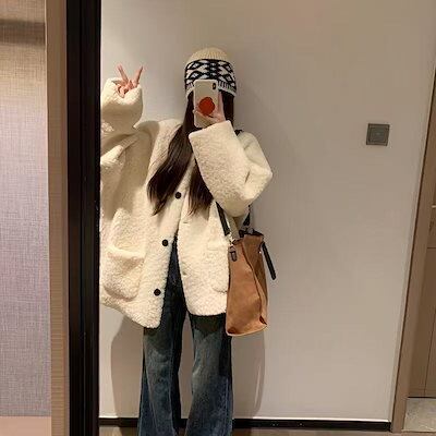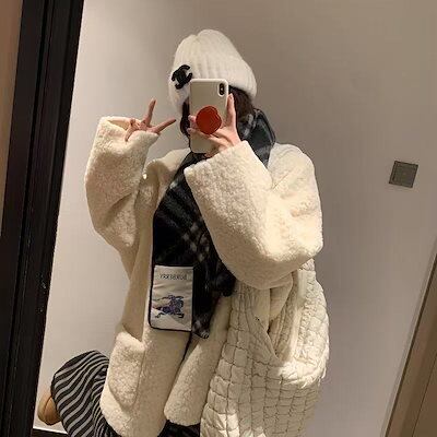 フェイクファー ラムファーコート レディース秋冬2025新作 韓国 ルーズカジュアル 毛皮一体厚手ファー付きトップス 若々しく見える ファー 毛皮アウター