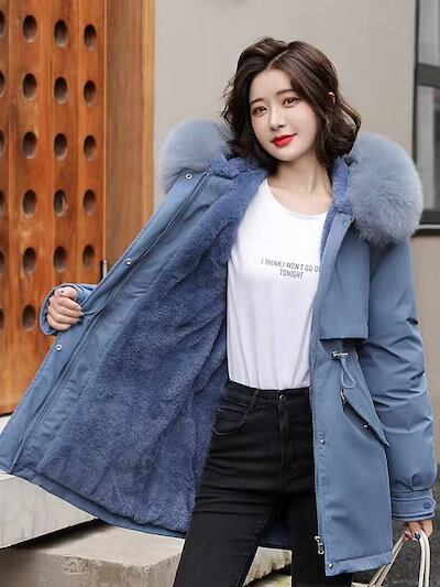 フェイクファー パイルコートレディース ミドル丈新作冬ゆったり韓国 裏地厚手綿衣おしゃれ綿服ワークジャケット ファー 毛皮アウター