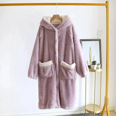 新作 ウェア モコモコパジャマ パジャマ レディース フランネルのパジャマ ダウンを厚くする 韓国ファッショ かわいい フード付きのシャツ パジャマ着 部屋着のガウンパジャマ