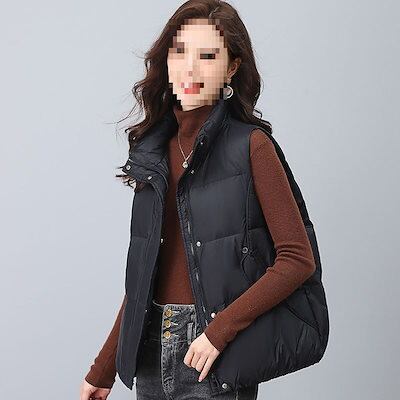 黒 ダウンベスト レディース 冬 新作 ミドルエイジ 小柄 韓国風 合わせやすい 超人気 おしゃれ ショート丈 アウター トップス