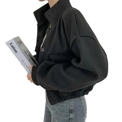 韓国風 秋冬 新作 スタンドカラー ニッチ ショート丈 ラフなスタイル ゆったり カジュアル ウール 毛織物 アウター レディース