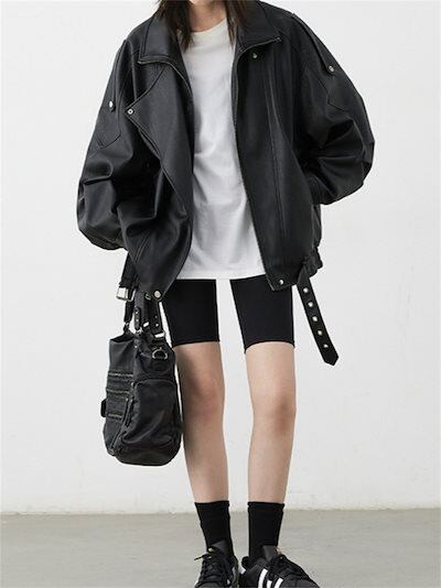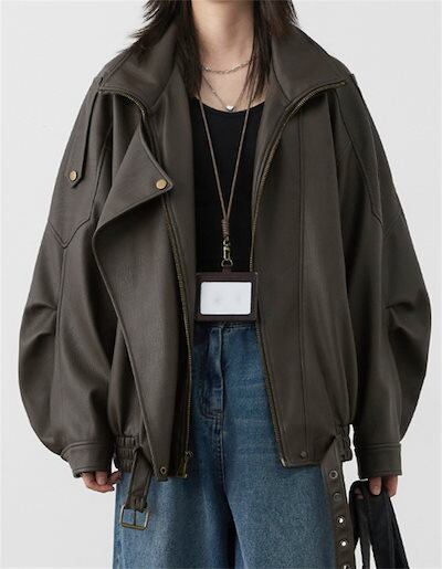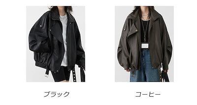 フェイクレザー ジャケット レディース 襟付き PUレザー ブルゾン ショート丈 合皮 レザー ヴィンテージライク クロップド丈 アウター オーバーサイズ 秋冬 長袖 ドロスト 無地 大人