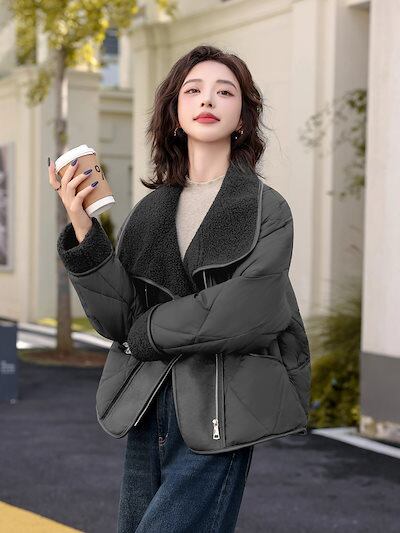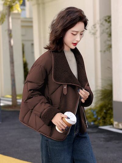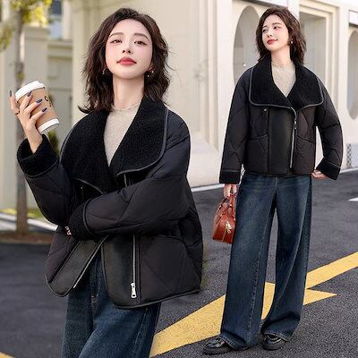 おしゃれ中綿コート2025暖かいショート丈レディースゆったり韓国風カラーブロック防寒スリム中綿コート