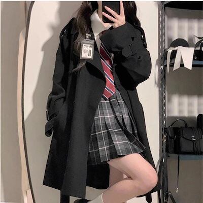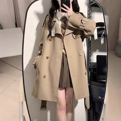 小さめウインドブレーカーレディース2025韓国風英国風ミドル丈ショートスタイルコート