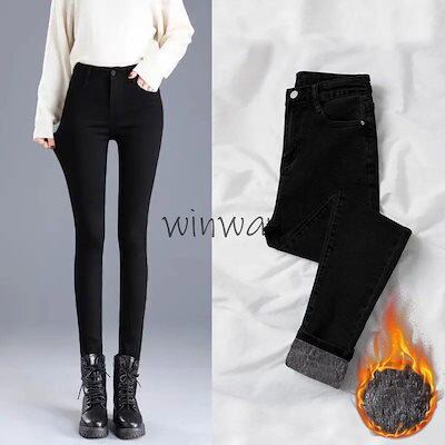 デニムパンツ レディース 裏起毛 秋冬 スキニーパンツ ハイウエスト ストレッチ 防寒 着痩せ カジュアル 美脚 秋冬 暖かい