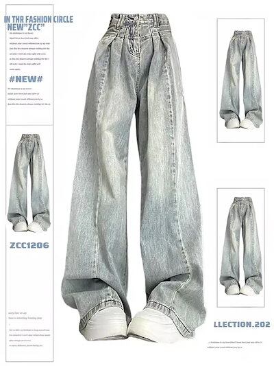 3日で出荷 人气 新作 デニムパンツ レトロ 明るい色 ハイウエスト ワイドレッグ ジーンズ レディース 24 スタイル ドレープ