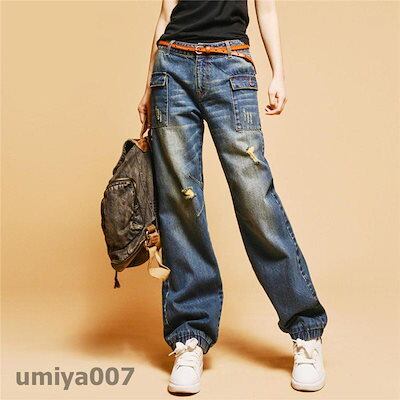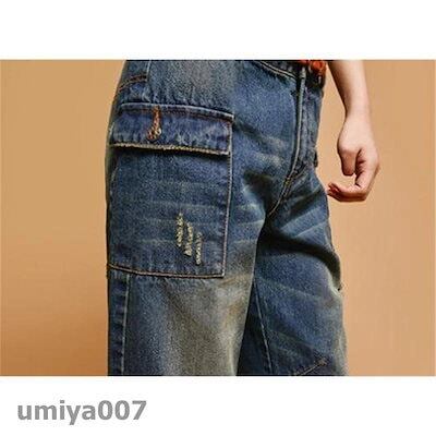 ロング丈 ワイドパンツ 体型カバー ストレート ガウチョパンツ カジュアル コーデ ダメージ レディース デニムパンツ オシャレ ハイウエスト ジーンズ 新作