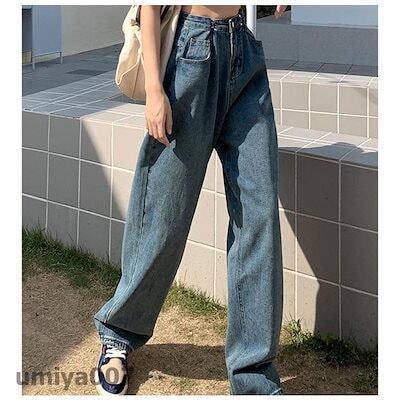 ジーンズ デニムパンツ オシャレ コーデ ガウチョパンツ ハイウエスト 人気 ワイドパンツ レディース ロング丈 体型カバー カジュアル ストレート 新作
