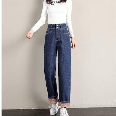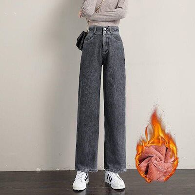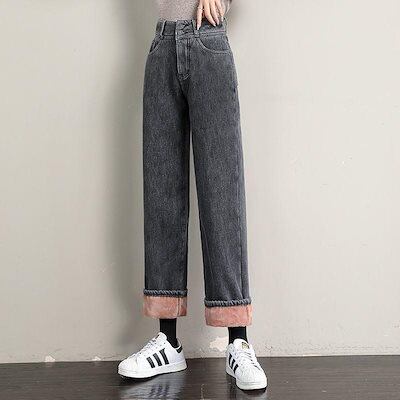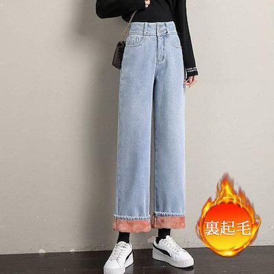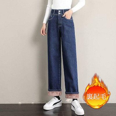 新品 大人気 デニムパンツ レディース ジーンズ 裏起毛 裏ボア 暖かい 秋冬 ワイドパンツ Gパン ボトムス 美脚 脚長 保温 防風 おしゃれ カジュアル