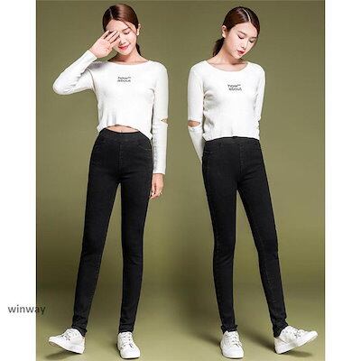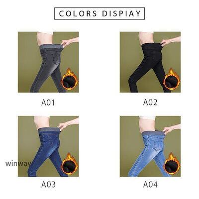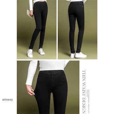 レギンスパンツ 裏起毛 レディース 美脚 デニム柄 ウエストゴム インナー 暖かパンツ スキニーパンツ ボトムス 厚手 防寒 新作