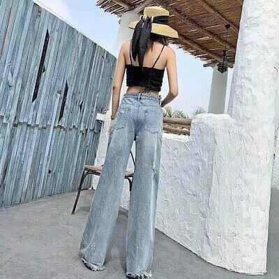 新作 レディース デニムパンツ ジーンズ ロングパンツ ストレートレッグジーンズトワイドパンツ 11