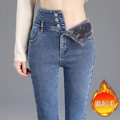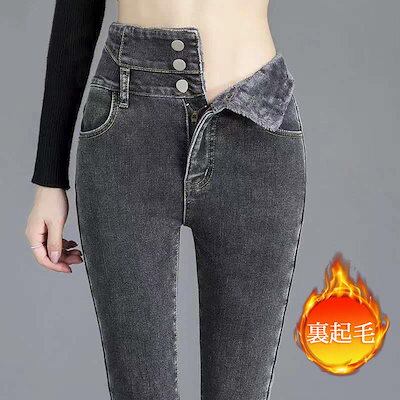 新品 大人気 デニムパンツ レディース ジーンズ 裏起毛 裏ボア ハイウェスト 暖かい 秋冬 ストレート Gパン ボトムス 美脚 脚長 保温 防風 おしゃれ