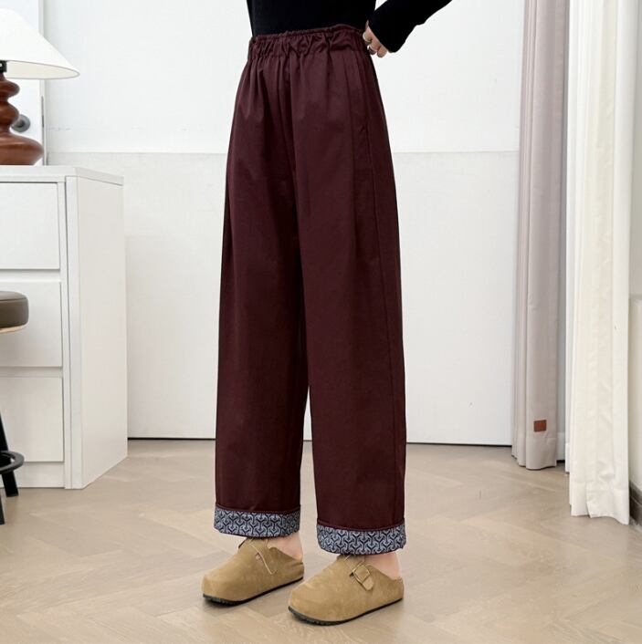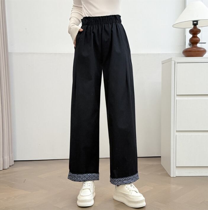 2025年秋冬新作 レディース ボトムス ズボン ワイドパンツ 韓国風 ウエストゴム 3色展開 XL#-4XL#