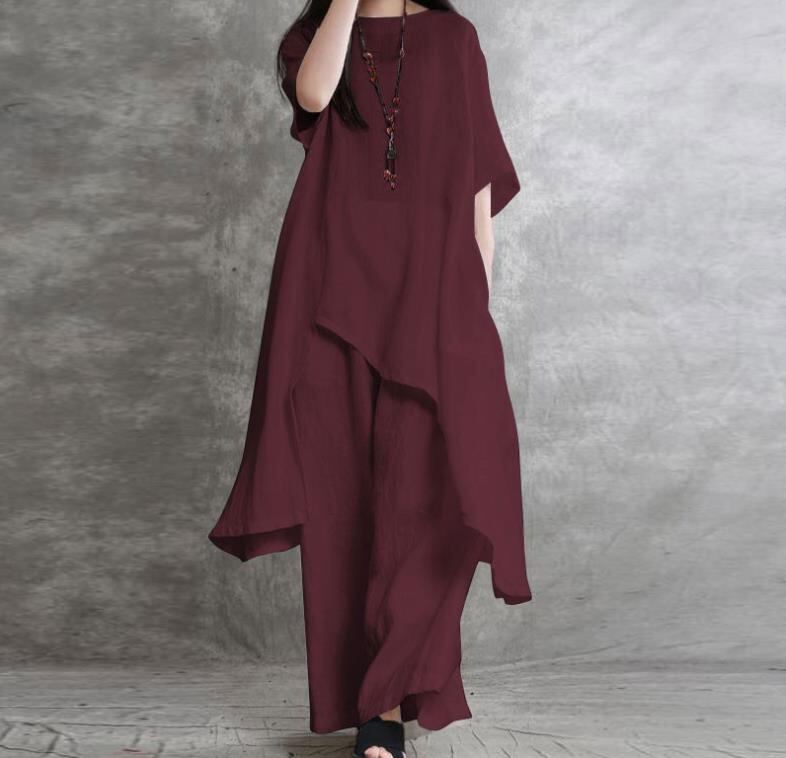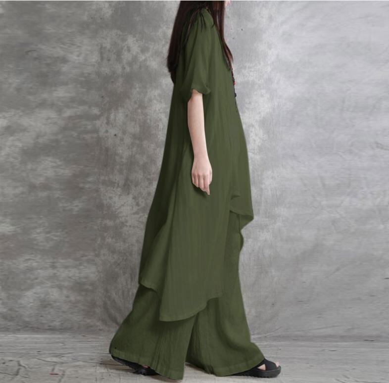 レディース服 2023年新作 トップス シャツ 不規則 ズボン ゆったり 無地 綿麻 4色 S#-5XL#