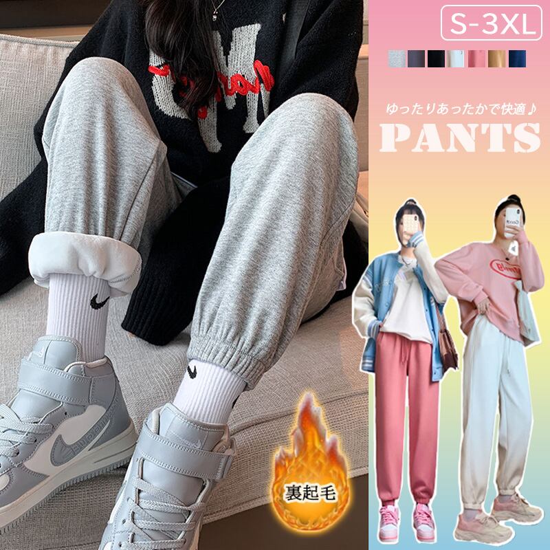2022新作 レディース 裏起毛 パンツ ズボン 低身長 ロング ボトムス ウエストゴム 楽ちん 無地 黒 グレー