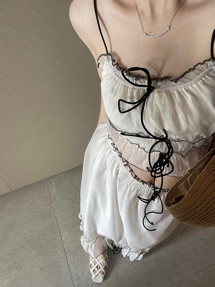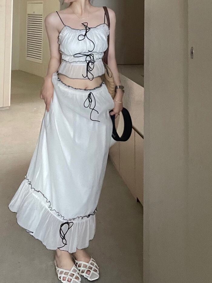 2025年INS 春夏新作 おしゃれ カジュアル系 気質 個性的 キャミソール+ハーフスカート