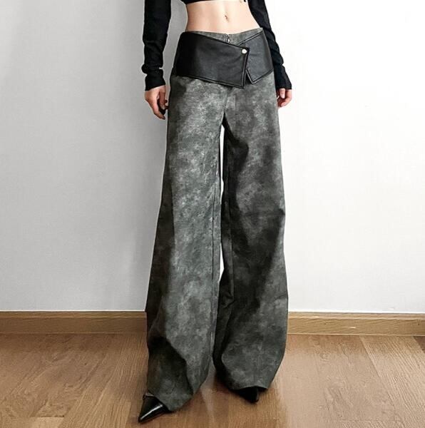 ボトムス ズボン パンツ ハイウェスト ワイドパンツ フェイクレザー