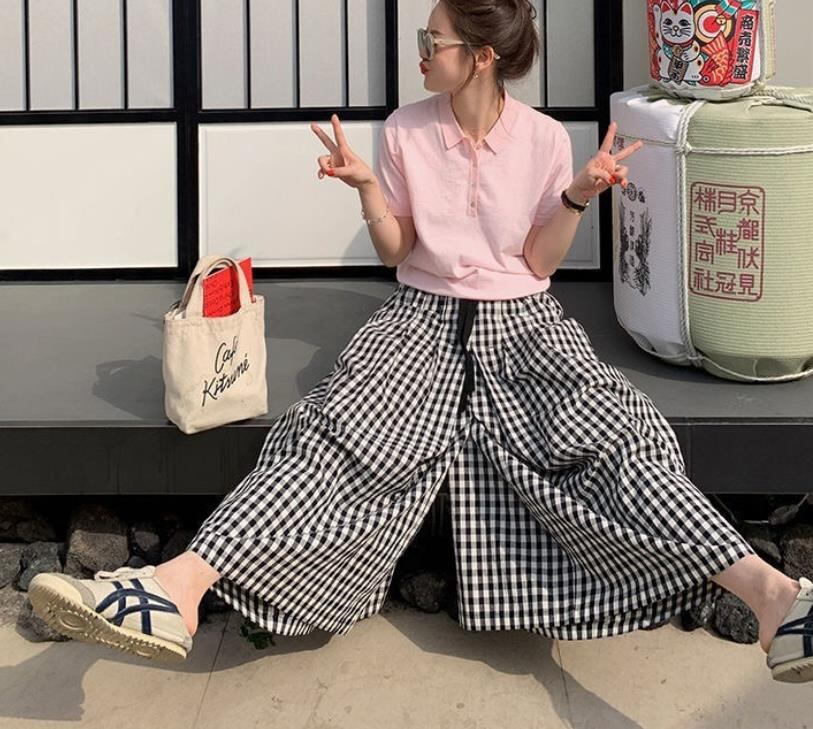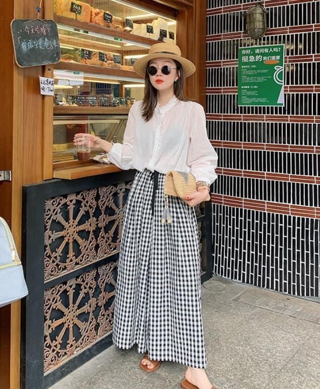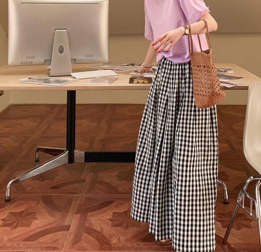レディース服 パンツ ズボン ワイドズボン チェック柄 ワイドパンツ 2色展開 S#-XL#