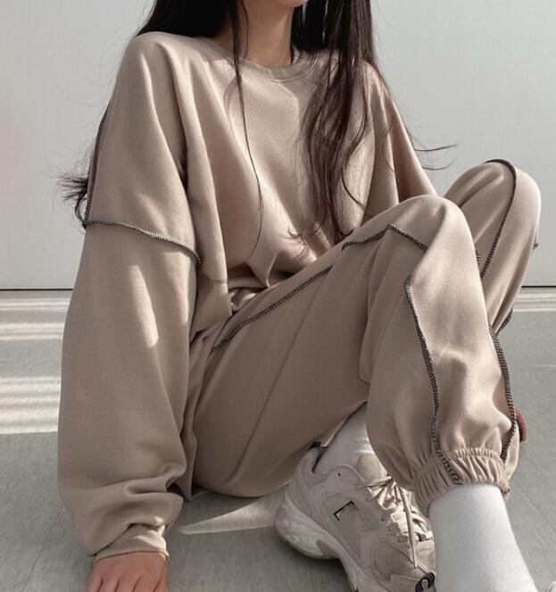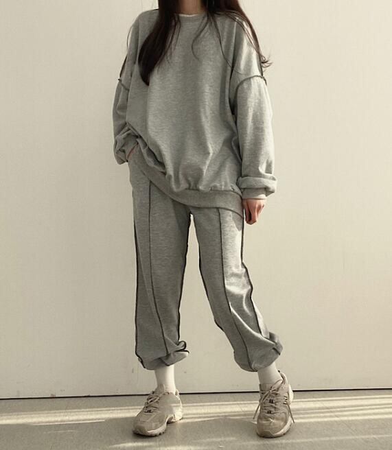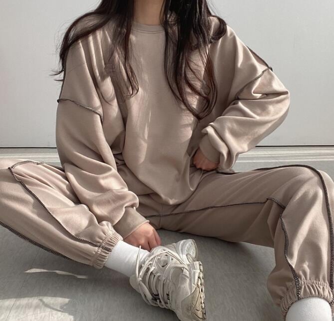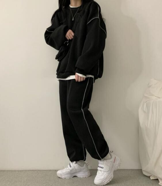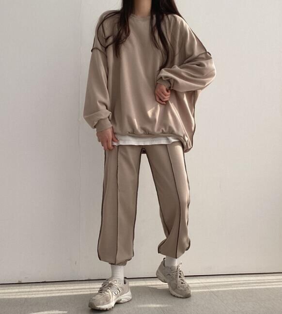 2024韓国ファッション カジュアル系 トップス スウェット 運動服セットアップ 4色
