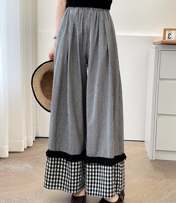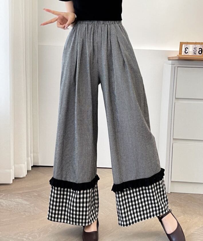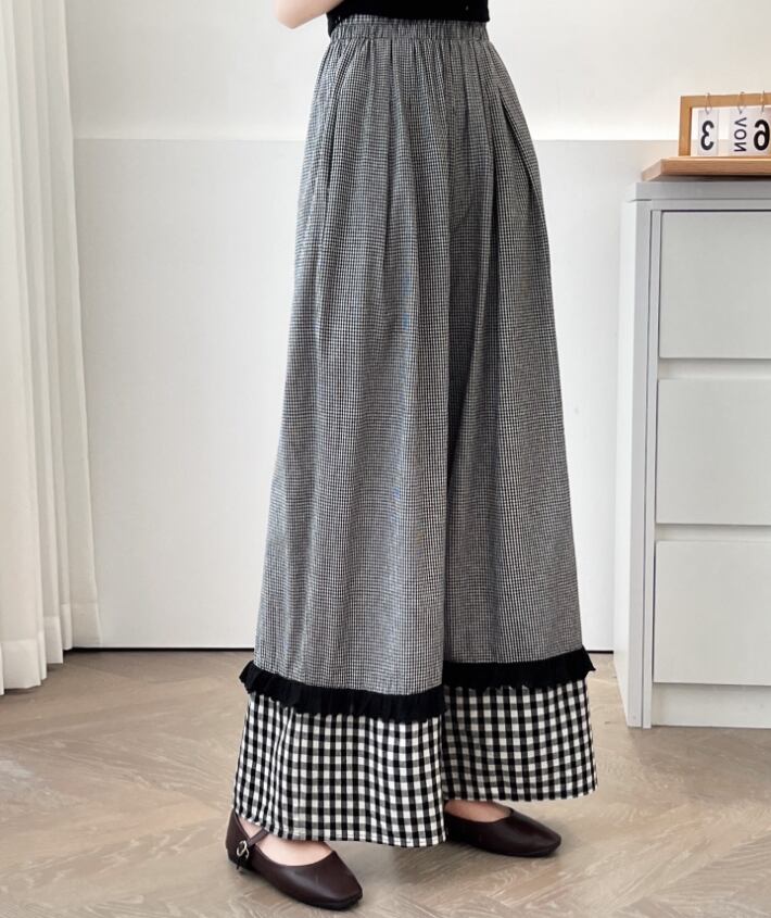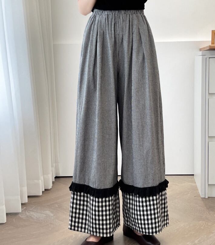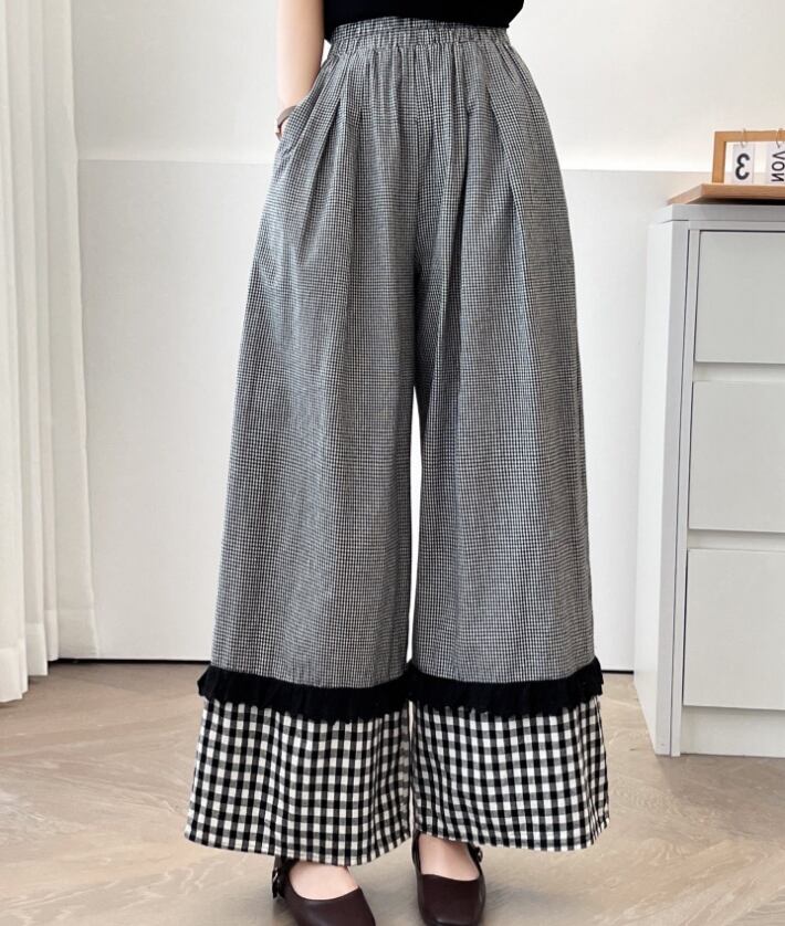 2024年秋新作 レディース服 ボトムス ロングパンツ ズボン ワイドパンツ チェック柄 切り替え