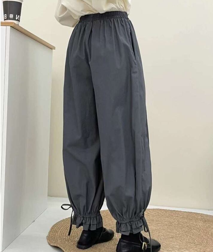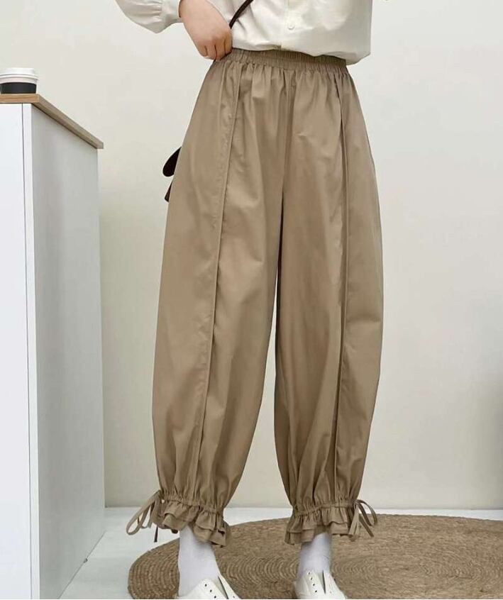2025年春新作 レディース服 ボトムス ズボン テーパードパンツ 純色 フリル 可愛い 2色展開