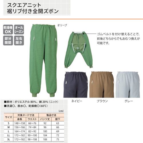 日本エンゼル 5111 スクエアニット裾リブ付き全開ズボン S/ネイビー