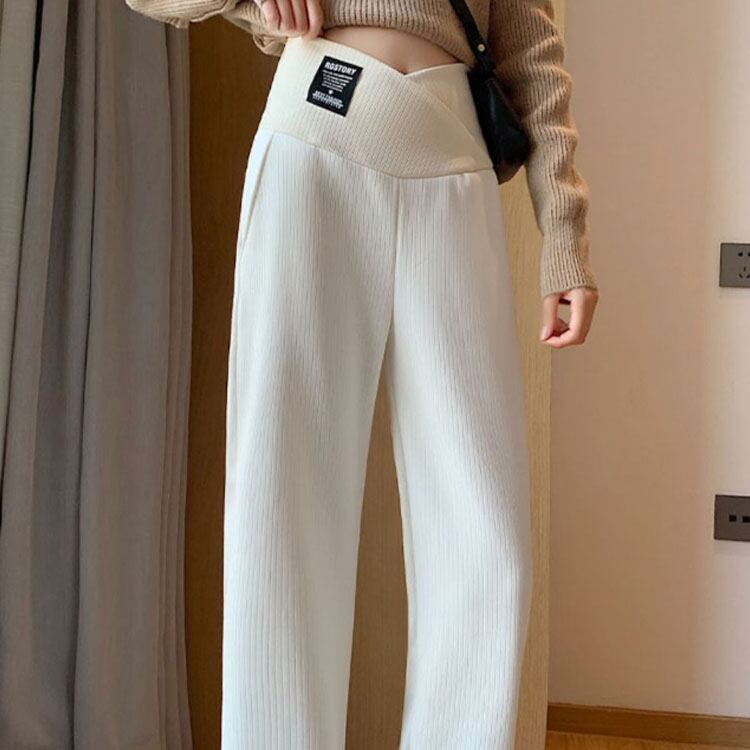 マタニティ ワイドパンツ あったか 裏起毛 パンツ 防寒 ズボン リブワイドパンツ 美脚