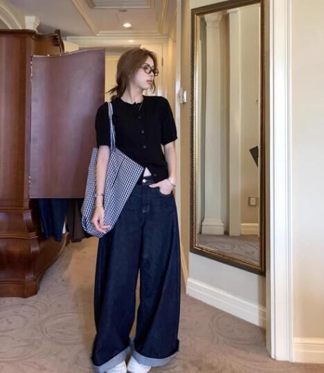 デニムズボンボトムスパンツジーンズジーパンストレートロング無地シンプルダンス衣装ヒップホップHIPH