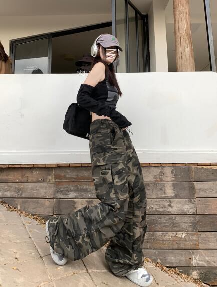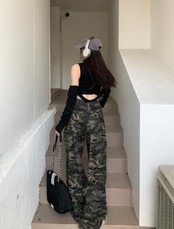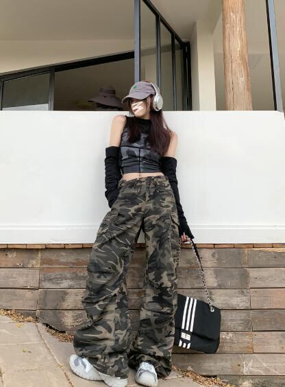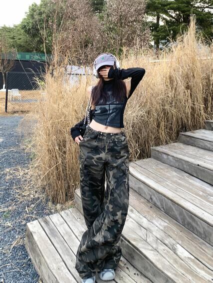 迷彩ミリタリーデニムズボンボトムスパンツジーンズジーパンストレートロングシンプルダンス衣装ヒップホッ