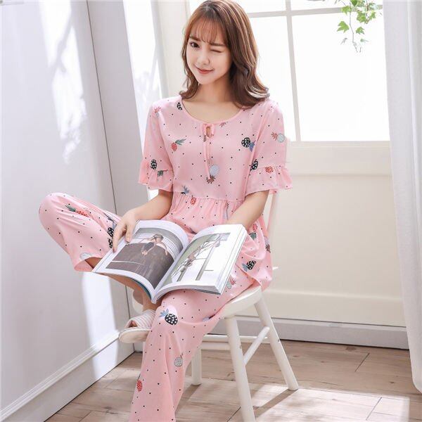 パジャマ レディース 上下セット 前開き 半袖 ロングズボン ルームウェア セットアップ ナイトウェア