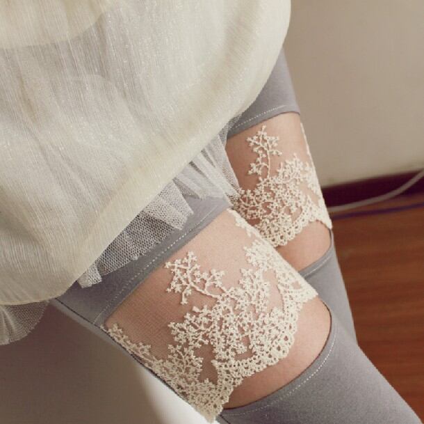 ★即納★可愛いレディースレース柄★★ひざ開き★ ★タイツ★レギンス★