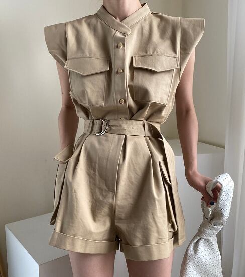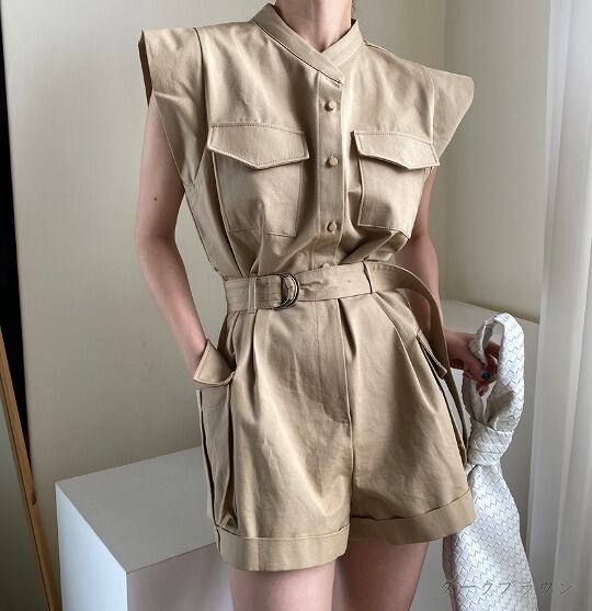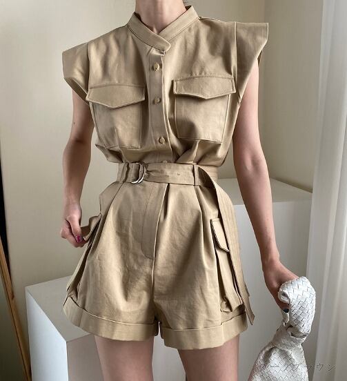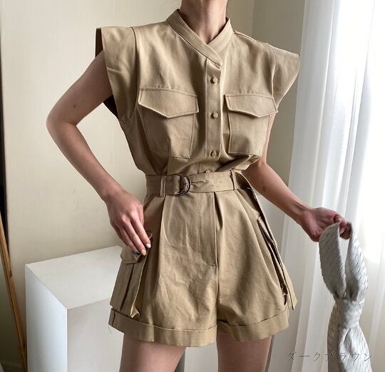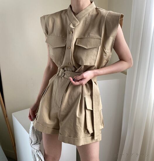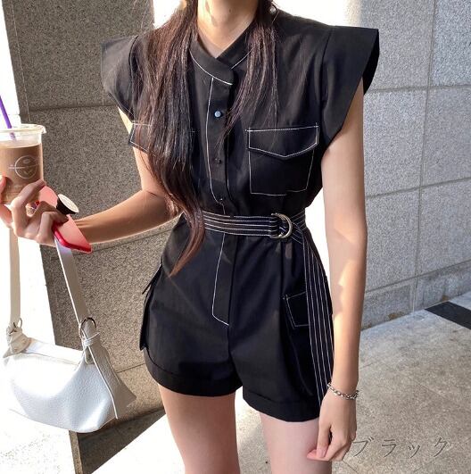 全2色 オールインワン オーバーオール 切り替え スリム 着痩せ シンプル