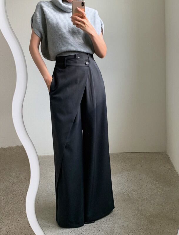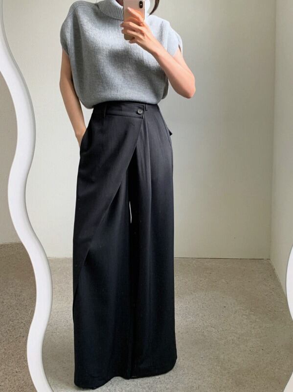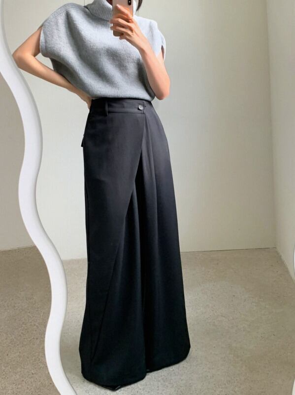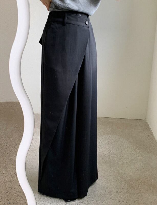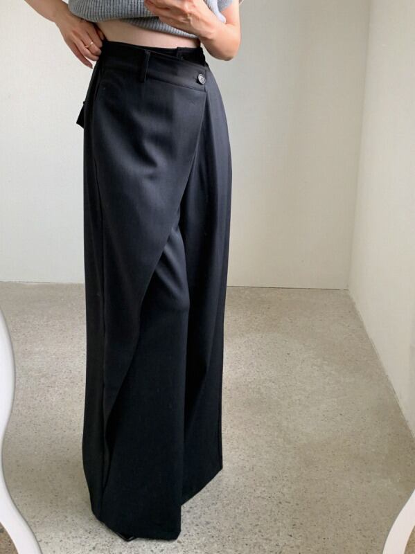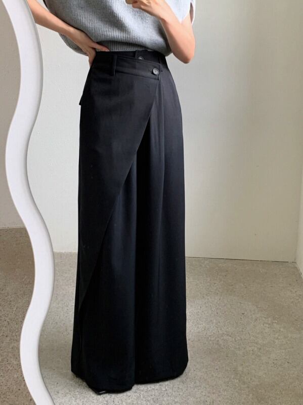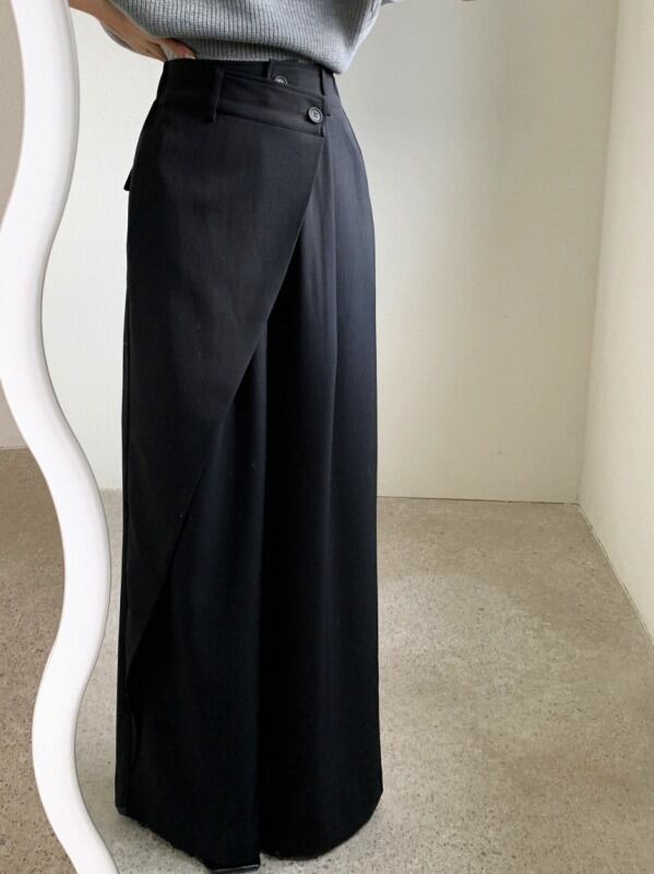パンツ アシンメトリー 切り替え 体型カバー 着痩せ カジュアル