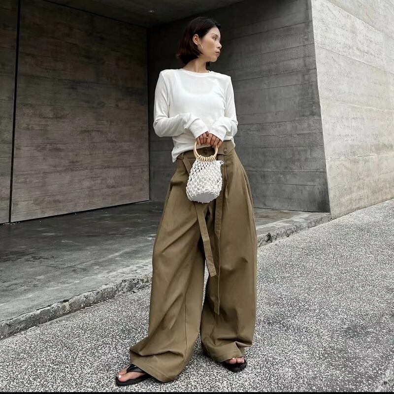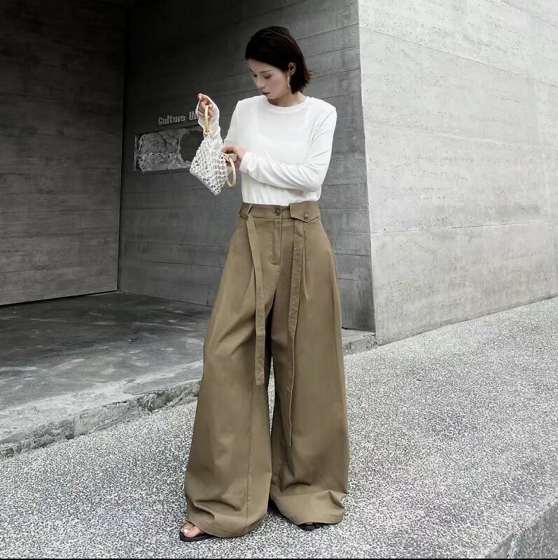 ワイド バギーパンツ 切り替え 体型カバー 着痩せ シンプル
