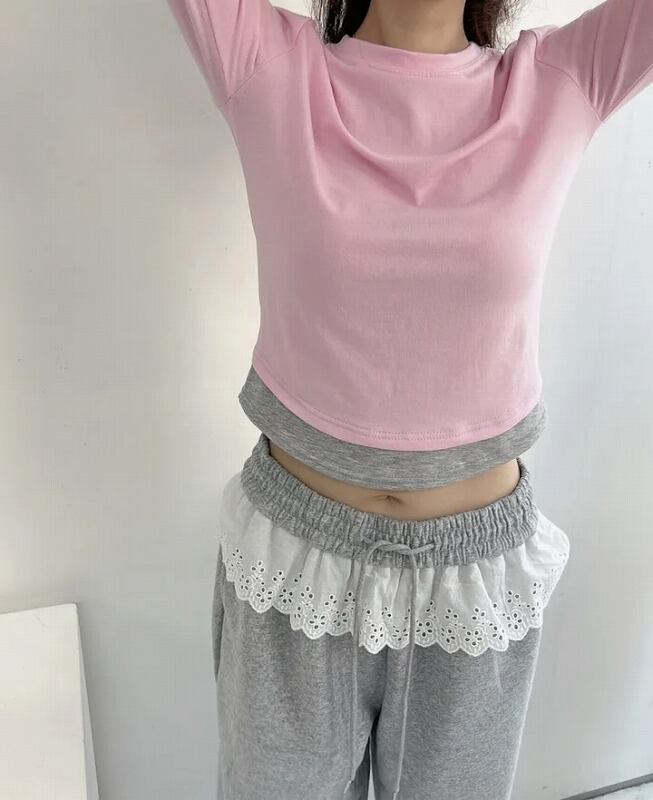 パンツ フリル 切り替え 体型カバー 着痩せ レース シンプル カジュアル