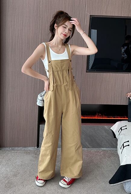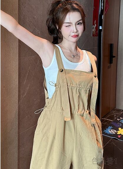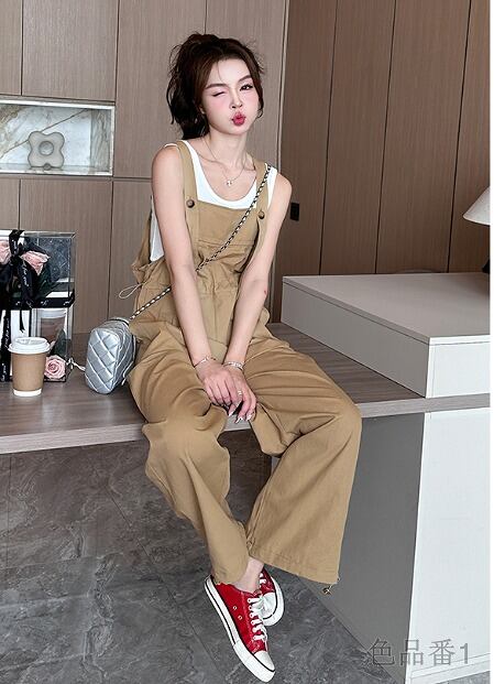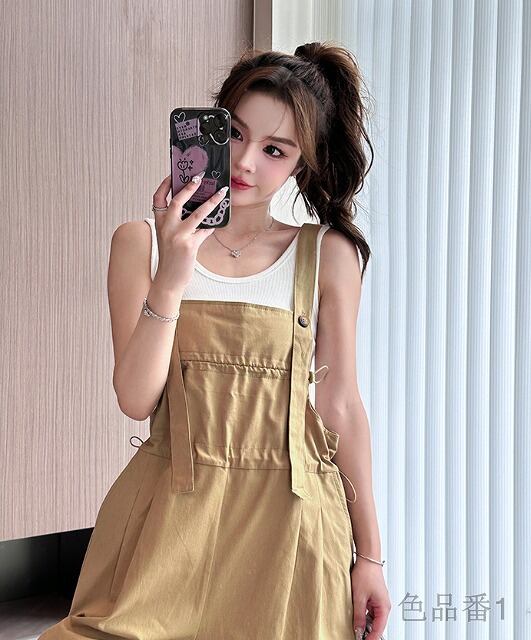 オールインワン オーバーオール ノースリーブ 切り替え 体型カバー 着痩せ カジュアル