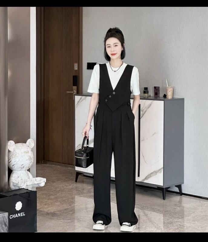 オールインワン オーバーオール 切り替え 体型カバー 着痩せ ノースリーブ カジュアル