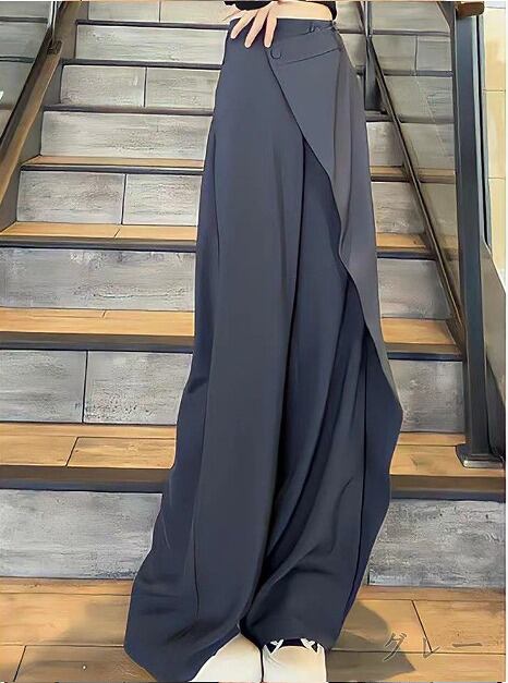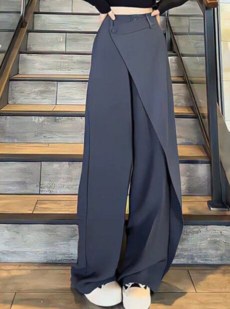 全3色 パンツ アシンメトリー 切り替え 体型カバー 着痩せ カジュアル