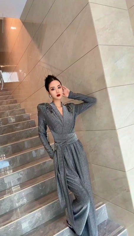 全2色 オールインワン オーバーオール 切り替え スリム 着痩せ 長袖 シンプル
