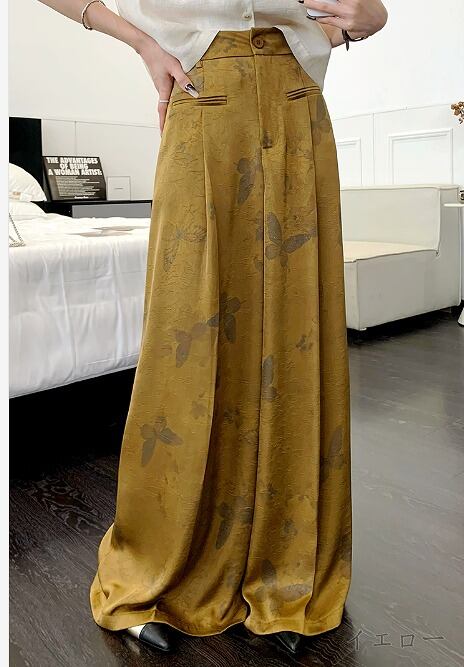 全4色 ワイド バギーパンツ 切り替え 体型カバー 着痩せ シンプル