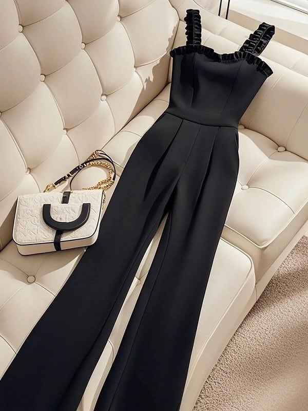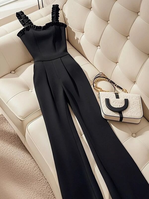オールインワン オーバーオール ノースリーブ 切り替え スリム 着痩せ フリル シンプル