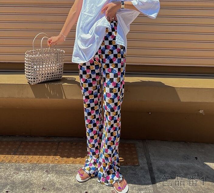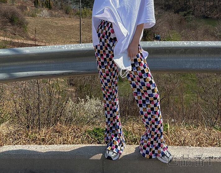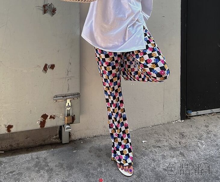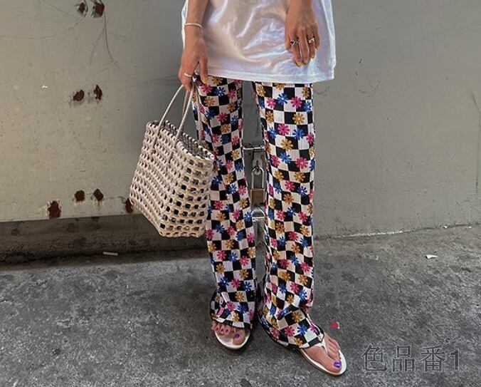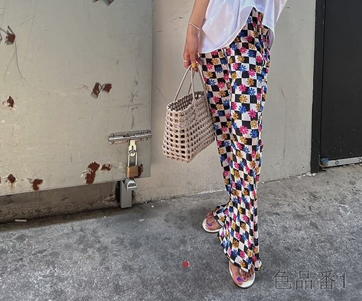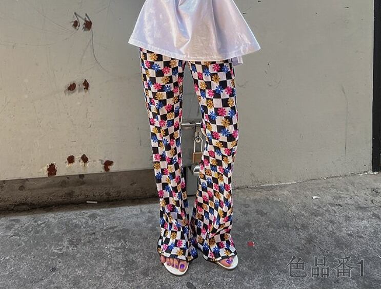 パンツ 切り替え バイカラー 体型カバー 着痩せ チェック柄 シンプル カジュアル