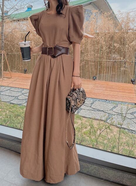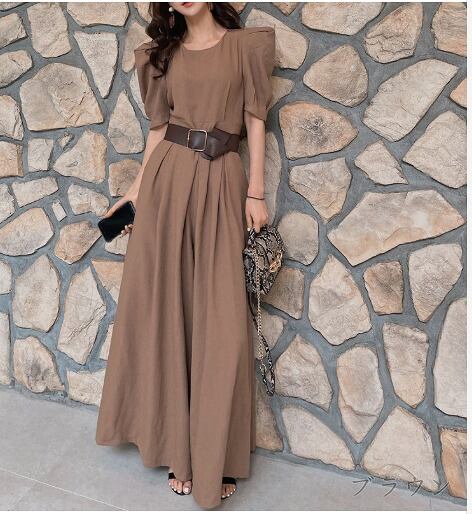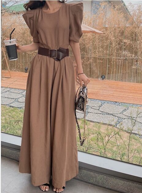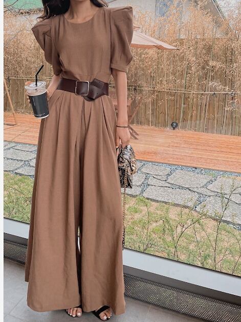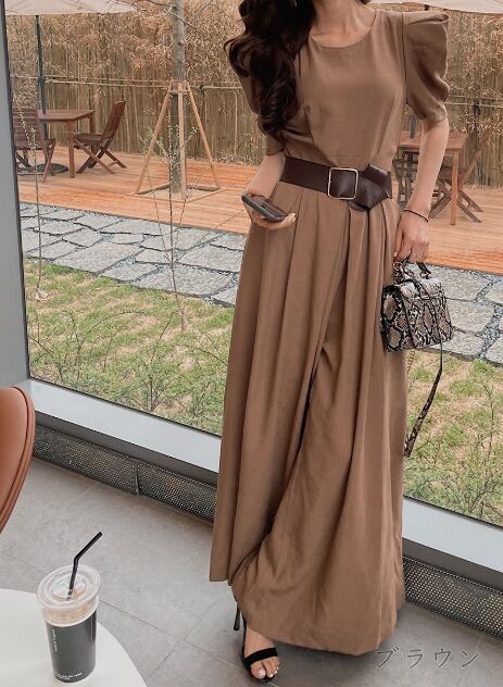 オールインワン オーバーオール ボリューム袖 切り替え スリム 着痩せ カジュアル