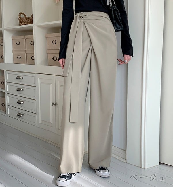 全2色 パンツ ハイウエスト 切り替え 体型カバー 着痩せ シンプル