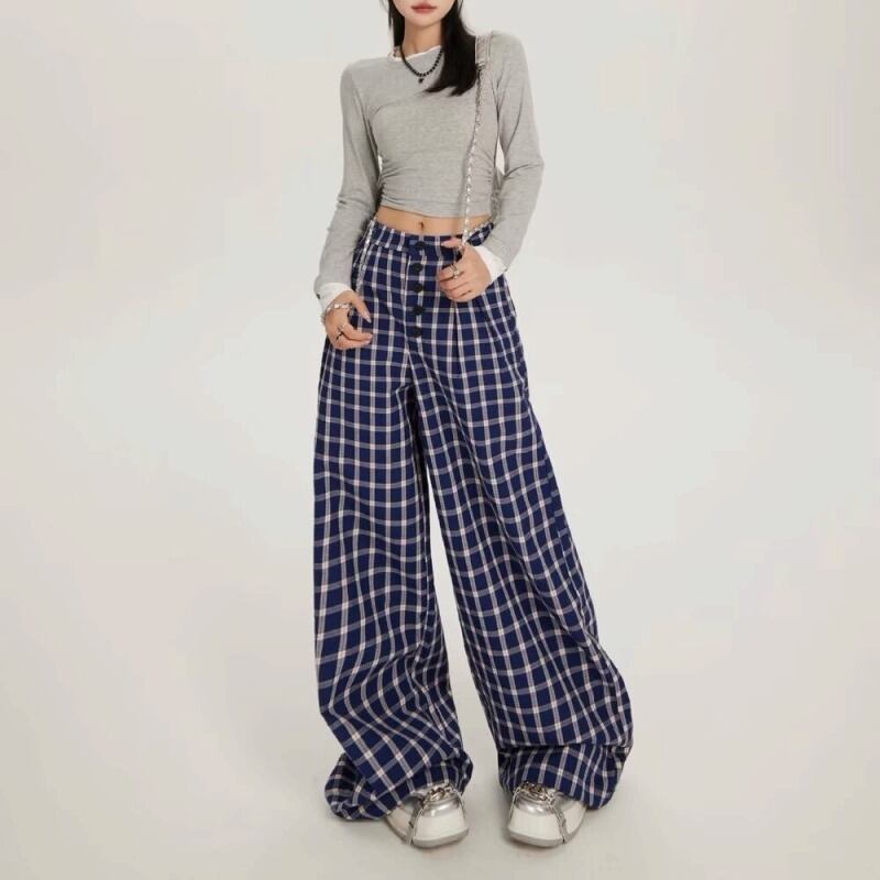 パンツ 切り替え バイカラー 体型カバー 着痩せ チェック柄 カジュアル