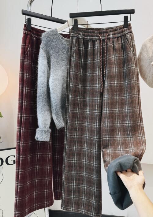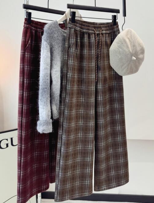 2024年INS 秋冬新作 気質 カジュアル系 ワイドパンツ 格ズボン スラックス 3色