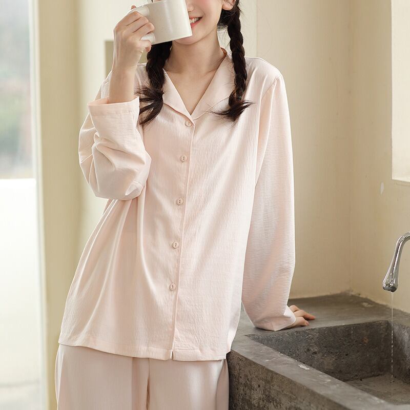 春夏パジャマ ボタン部屋着 女性 ゆったり 長袖上着 カジュアル長ズボン スーツ