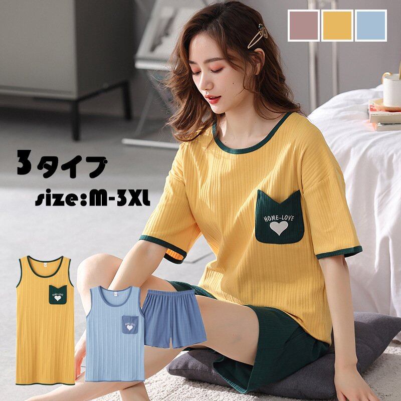 パジャマ レディース 夏 2点セット ワンピース ルームウェア 半ズボン ノースリーブ 半袖