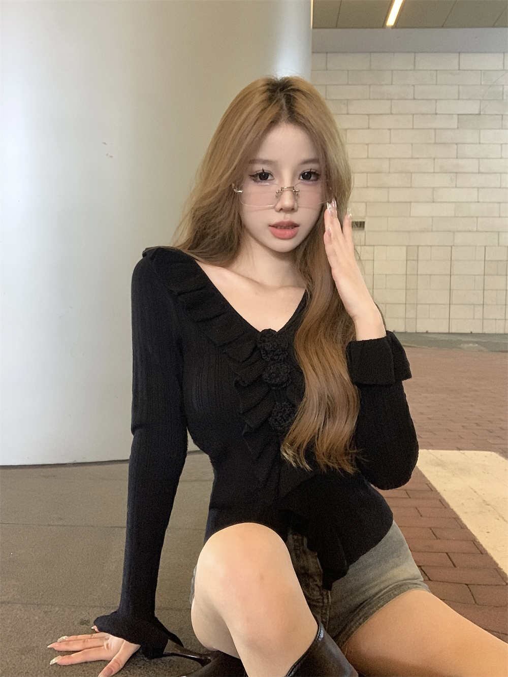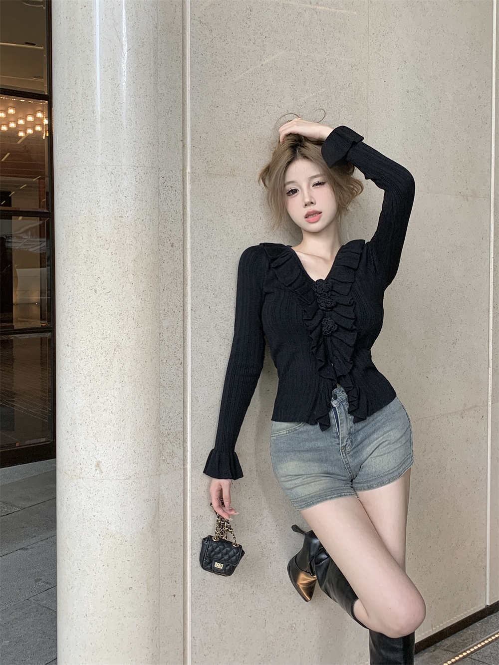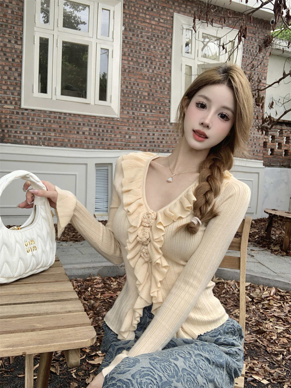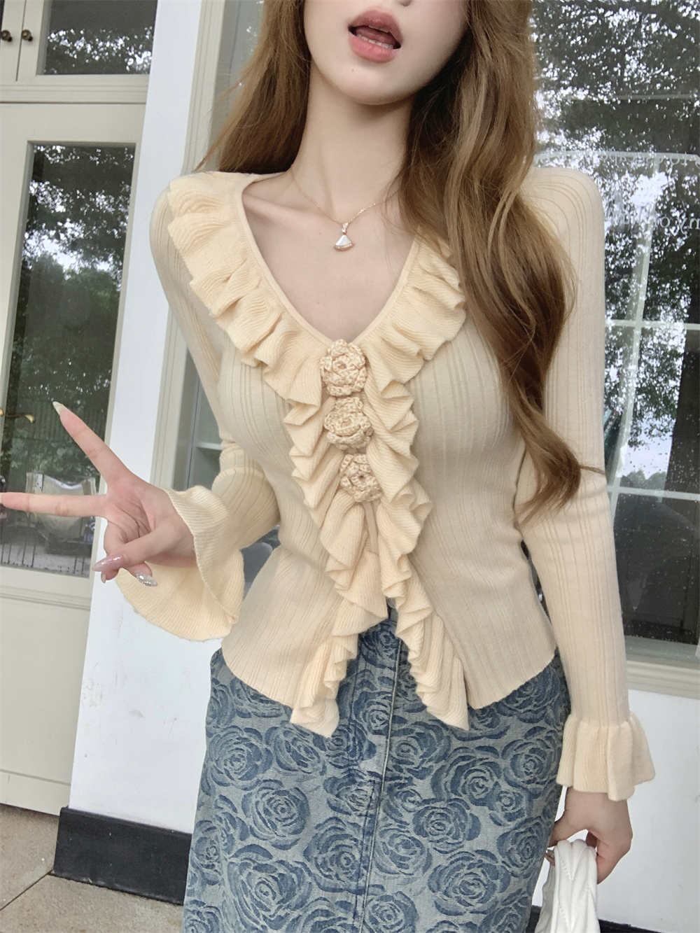 2023秋INS新作★カジュアル フランス風 フリル デザイン性 着心地抜群 ニットカーディガン